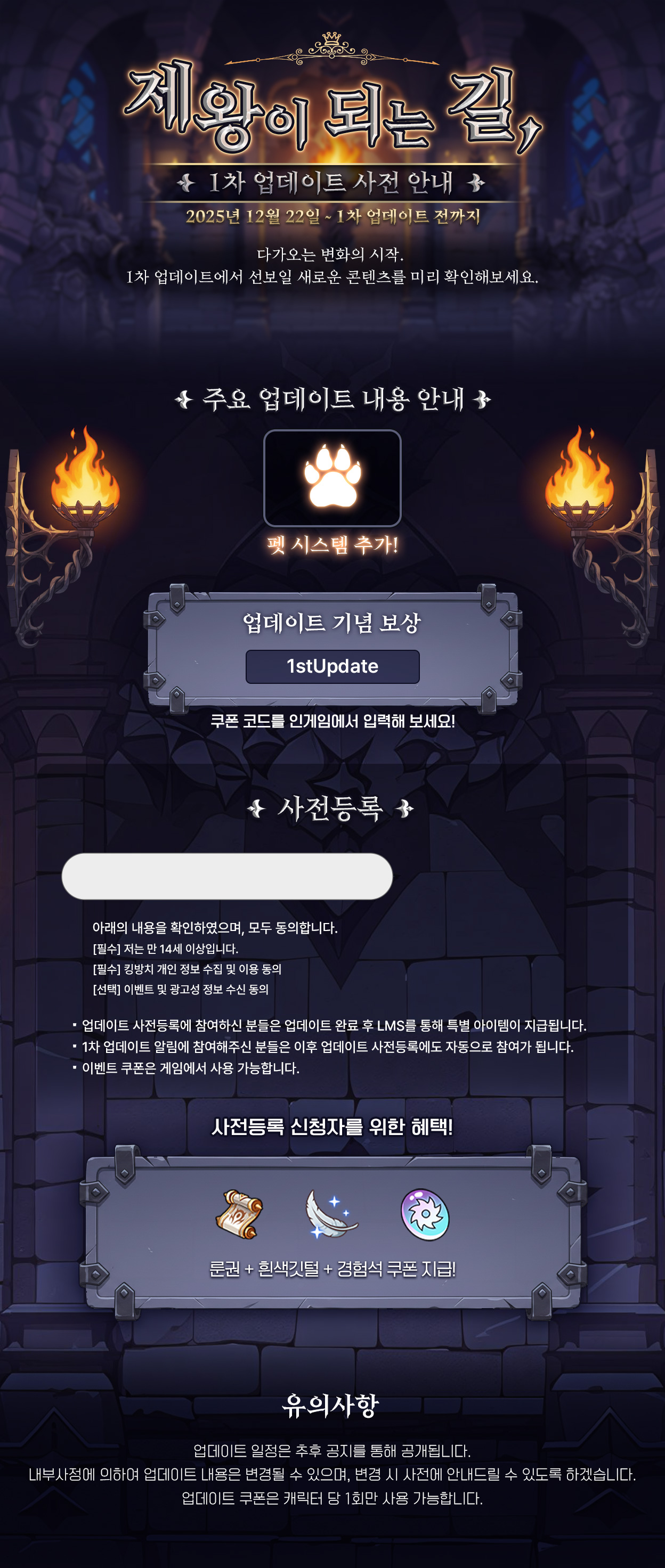 제왕이 되는 길, 1차 업데이트 사전 안내